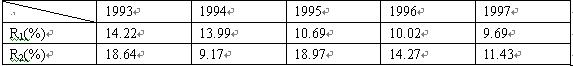 表2 1993-1997年全部上市公司与含职工股上市公司的平均净资产收益率