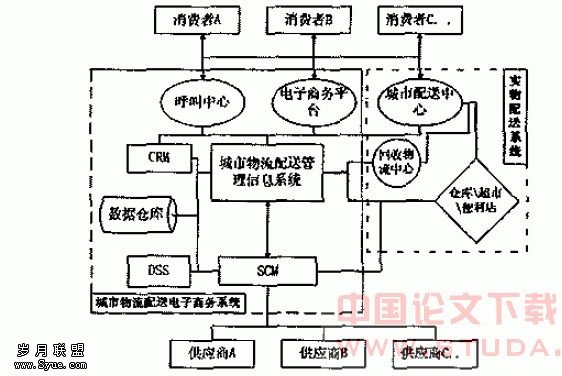 电子商务下的城市物流配送系统包括电子商务系统(虚拟物流系统)和实物配送系统(见图1)。
