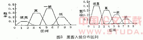 对黑客入侵的风险评价进行模糊处理,得到其概率分布区间如图3所示。