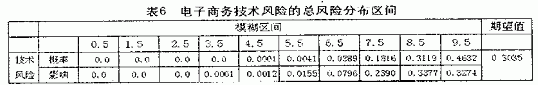 根据总风险的概率分布区间、影响分布区间,计算出总风险程度的期望值E=0.3035,方差=0.00368,该电子商务的技术风险等级为一般,与实际情况相符。