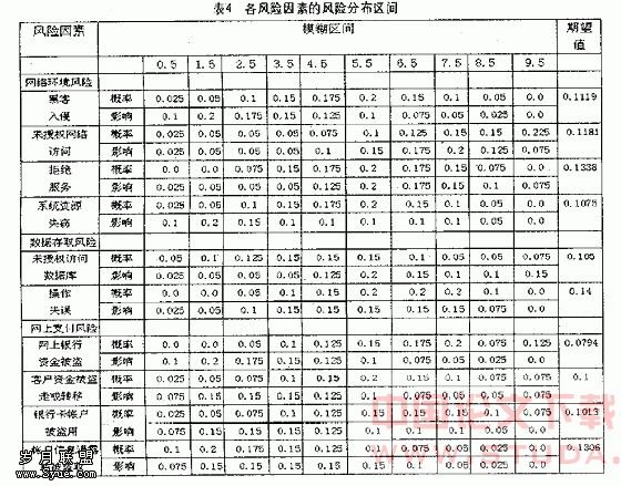 采用与黑客入侵同样的处理方法,得到各风险因素的风险分布区间,见表4。