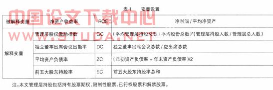 公司业绩的考核指标有利润率和公司价值指标等,而公司会计利润可以采用总资产利润率、净资产利润率和息税前利润率等等;公司价值指标可以采用公司市场价值与其重置价值之比(托宾Q值)、公司股票市值等等。笔者选取净资产利润率来作为公司业绩考核指标,主要是因为我国股票市场的很多特殊性造成公司市场价值可性小,同时净资产利润率相对于其他会计利润率指标而言更能体现公司对单位权益资本的利用效率。