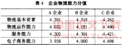 2.企业C的商务能力呈现较强态势,有效地弥补了该企业的物流基础能力不足现象,其电子商务能力和物流运作能力以及服务能力均呈现正效应。这说明,在信息时代,企业电子商务的实施已成为当务之急,物流企业可通过信息化途径迅速占有市场、赢得客户并提高管理效率。