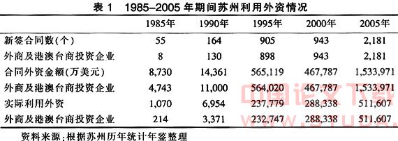 早在1985年,苏州就被国家批准为对外开放城市,享受国家优惠政策,但当时盛行的是以乡镇企业为特征、主要满足国内市场需要的“苏南模式”。1990年前后,苏州利用其与上海毗邻的区位优势,主动融入上海,实现了外向型经济和错位发展战略:一方面积极发展出口加工贸易,增加地区外汇收入,另一方面积极招商引资,大力兴办“三资企业”。20世纪90年代末,随着跨国公司全球战略的推行,苏州再次抓住国际产业资本加速向长三角地区转移的机遇,积极发展出口加,从而迅速推动苏州模式走向成熟。