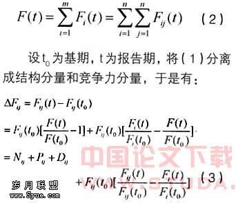 ΔFij为j区域第i个工业产业产值的增加额,Fij (t0 ),Fij (t)分别为j区域第i个工业产业基期和报告期产值。由(3)知,j区域第i个工业产业产值的增加额由以下三个部分组成。