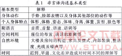 5.有意识运用非言语沟通的技巧。非言语沟通在实际沟通中起着非常重要的作用,甚至比通过语言表达的信息更为重要。非言语沟通包含身体动作、空间利用和副语言等,如表1所示。在人们实际沟通过程中,非语言信息量占人们所接受总信息量的60%以上。