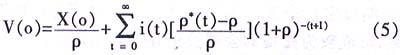 其中:X(0):企业每年持续获得的收益;I(O):第t其企业的投资;v*(t):企业获得超过资本市场利率的超额回报率;其它参数同上。
