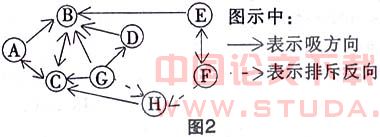 对于组织中的的人与人之间的关系,人们可以从不同的角度运用不同的方法进行研究,如美国社会心理学家莫雷诺创造的团体成员关系分析法。(如图2)莫雷诺通过具体调查,收集资料,用“团体成员关系图”的形式来分析人与人之间的关系。图中表示一个8人小组的成员关系。A、B、C、可能是这个小组内部的一个小集团,B可能是它们的小头目,因图中A、B、C、D、E、G者倾向他。E与F互相接近,但别的人不太喜欢他们,H可能是个孤立的人物。F、D和E、D彼此不太往来。在这种成员关系分析图中,有助于人本管理者了解个体在团体中的地位、影响力、适应性以及成员之间吸引与排斥的心理。这对于人本管理者分配人员工作、组合工作群体、选拔基层领导人等都有价值。