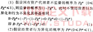 第三,定量地确定经营者行为异化的程度。从上文博弈模型的分析我们可以看出,对国有企业经营者实行有效监督不只是从定性的角度和从理论的层次上分析如何建立健全有效的监督机制,我们还应从定量的角度分析国有企业监督机制的效率。通过分析国有资产代理者监督的概率,可确定经营者行为异化的程度,从而确定相应的对策,达到控制经营者行为异化的目的。