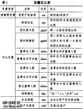 结合已有的研究,在理论分析的基础上,本文研究公司治理结构特征与企业绩效的相关关系。研究分为以下几个方面: