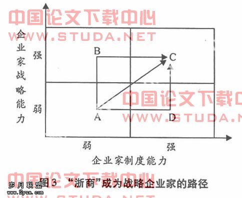 据此推论:战术企业家是企业家成长的初级模式;制度企业家、愿景企业家是企业家成长的中级模式;战略企业家是企业家成长的高级模式。根据这个逻辑,在制度变迁情境下,“浙商”成长的方向应该是战略企业家。