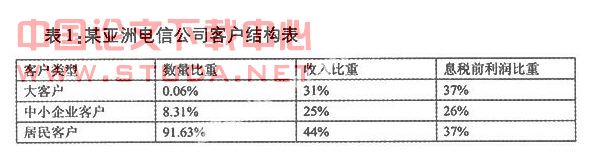 如某亚洲电信公司中资费收入最高的1000家大客户数量占客户总数0.06%,而收入占总收入31%,利润占总利润37%。