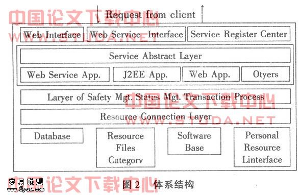 航空企业知识管理系统现有应用服务器、Web Ser-vices容器、Web服务器等服务器体系结构,并在此基础上建立一个符合知识管理的资源容器,以提供知识管理的服务抽象、服务部署、服务管理和服务的注册、发现。实现统一的应用服务框架,以便各种信息、知识资源的共享。