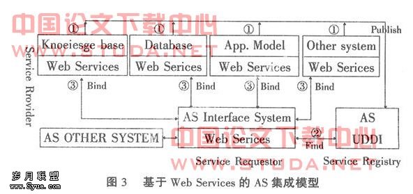 建立分析系统UDDI注册中心(AS UDDI),将各种知识库、数据库或模型注册登记于其上,查询结果或模型的运算结果作为服务。用户通过AS UDDI,使用WSDL,使查询需要的Web服务并调用它的任何公共函数的过程自动化,并能使应用程序集成新的服务。采用WSDL可以动态添加新的子系统。