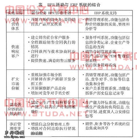 (2)BPR活动与ERP系统的结合。BPR活动与ERP系统的结合如下表所示: