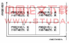 Ⅱ区内的因素,企业的应对能力和外部不确定性都很高。这时企业可以继续关注这些因素,希望将它转化为Ⅳ区的因素。
