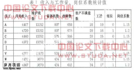 2008年底,S公司管理部门选用安装维护部员工月均收入、月维护线数、终端装移数、故障修复数、客户不满意数、工龄、组长和岗位系数(岗位技能)为统计指标,分析该部门员工全年收入与相关工作量的影响因素。见表一。