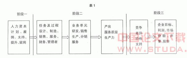 投资的资本存量,在各种投资中,对人本身的投资是最有价值和富有远见的。舒尔茨列举出五种主要的人力投资形式:1.医疗和保健,从广义上讲,它包括影响一个人的寿命、力量强度、耐久力、精力和生命力的所有费用;2.在职人员的培训;3.正规初等、中等和高等;4.厂商组织的为成年人举办的学习项目(包括那些多见之于农业的技术推广项目);5.劳动力适应于就业机会的迁移。后来又增添了用于移民入境的支出及提高企业能力方面的投资。舒尔茨把教育投资看作是整个人力投资最主要的一部分,指出:人们自我投资以增加生产能力与消费能力,而学校教育乃是人力资本的最大投资。教育的作用远远超过被看作是实际价值的建筑、设施、库存物资等物力的资本。对企业而言,企业不应该将对人力资本管理看成一项成本,而是一项创造价值的活动。由于人力资本理论把人力资本视为由投资而形成的,因此,就要考虑人力投资的效益,不同程度不同种类人力投资的收益,并与物质资本投资相比较。在企业的信息和价值创造的循环中,处于中心地位的是人。在一个循环中,一个阶段的信息可以返回影响前一阶段或几个阶段。价值增值是企业的战略目标,这个目标分解到各单元并最终落实到人力资源部门的主要活动——人力资本管理。(见表1)