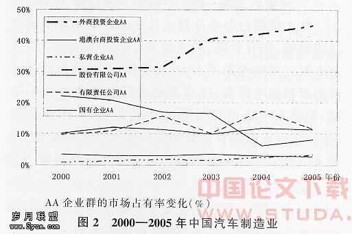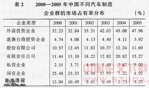 随着大众、宝马、福特、沃尔沃、奔驰、三菱、、本田、丰田、雷诺、通用、菲亚特等世界各国知名品牌汽车企业,以及美国德尔福、伟世通、德国博世、日本电装等著名汽车零部件厂商纷纷来到国内投资生产,国内外汽车企业的合作得到了更为充分和良好的发展,可以说中国是汽车制造业企业竞争发展的世界舞台。如何分析中国企业参与国际竞争的水平和问题,以及外国企业在中国的国际竞争力表现,成为中国汽车制造业企业未来发展需要了解的一个重要视角。本文利用国家统计局的全国汽车制造业国有及规模以上非国有企业统计数据(2000—2005),从一种新视角入手,分企业类型,以外商投资企业的竞争力水平为国际竞争力标杆,对比其他内资型企业,展开中国汽车制造企业群的国际竞争力系统分析。