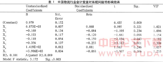 关键词:物流行业, 系统风险, 系统风险决定因素, 公司特有变量