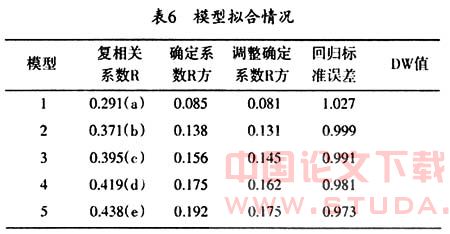 从表7中我们可以得到回归方程的系数,并把回归方程描述如下: