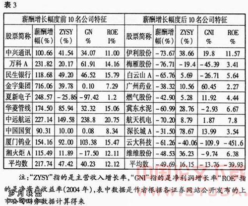 根据以上分析,对于我国上市公司来说,薪酬激励机制发挥作用的前提条件并不具备,那么,上市公司高层管理人员薪酬变化与公司业绩的相关性如何,是否发挥了其应有的治理作用,本文的写作目的就是探讨此问题。在数据的选取上,我们主要选取2003、2004年上市公司公开的财务报表上的数据,薪酬主要选取货币性收入。公司的业绩考核选取最具代表性的两个指标:利润增长率和净资产收益率。