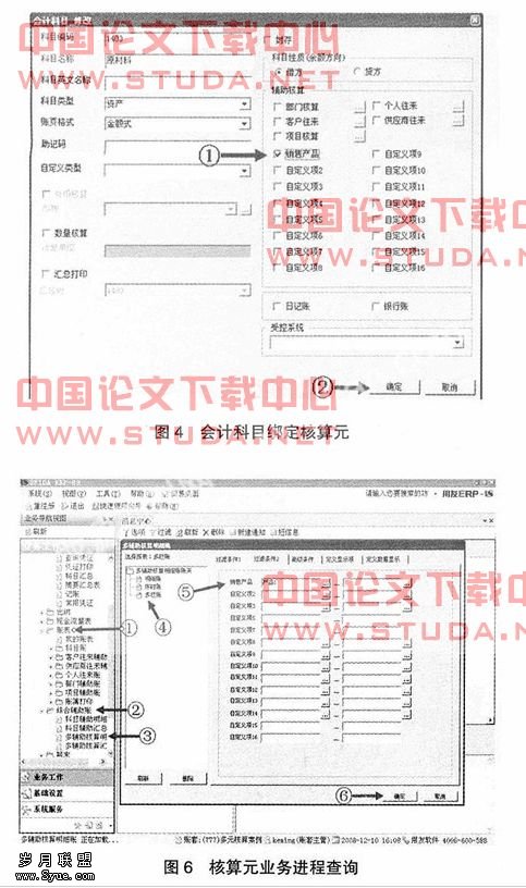 首先将需要核算的业务对象定义为“核算元”。对核算元的业务过程核算的原理是通过一组反应业务进程的会计科目的核算,提供以核算元为信息汇集点的相关科目查询,以掌握业务(“核算元”)的业务进程状态。比如,以销售的产品为核算元,销售的业务过程包括采购、库存、销售、成本、支付费用、缴纳增值税、应收、应付等环节,在用友U8ERP-871软件中,可以用以下四个步骤完成核算设置及核算。