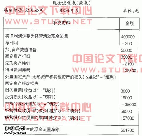 3.存货、应收账款和待摊费用属于资产,同在会计等式的左侧,增加和减少的变化与现金流量的变化方向正好相反,即:增加就减去,减少就加上。
