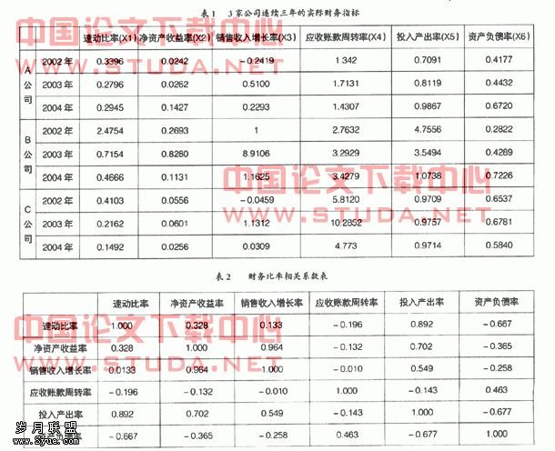 (二)财务比率相关系数,见表2。