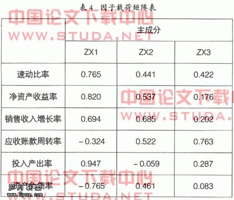 根据表4,可以得到各主成分因子与原始财务比率指标的主成分模型: