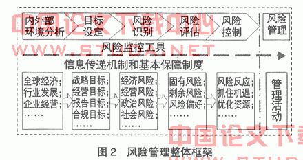 确保集团风险监控体系的正常和有效运作,必须将风险管理的相关机制和活动整合为一个有机的整体(如图2所示)。在这一整体中,信息传递机制(主要包括企业内部管理报告体系和风险管理报告)和基本保障制度(企业内部控制制度和财务总监委派制度)是根本前提,风险监控工具(企业内部审计和现代风险导向审计)是关键,风险管理流程和相关活动则是核心。