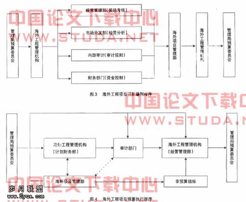 需要注意以下几点:(1)管理局预算委员会批准的预算分解下达到海外工程管理机构(财务部门)作为结算、核算和财务收支的依据,下达到各海外项目部作为经营活动的依据,下达到海外工程管理机构(经营管理部)作为业绩评价和实施奖惩的依据,下达到审计部门作为预算审计的依据;(2)海外工程管理机构要尽量与各施工作业单位协调,提高全面预算在生产经营活动中的可行性;(3)海外工程管理机构财务部门集中办理各海外工程项目的核算和结算业务,统筹分配资金;(4)在业绩考核和编制奖惩方案时,除了预算指标外,还要充分考虑非预算指标,如HSE管理。预算执行程序如图4所示。