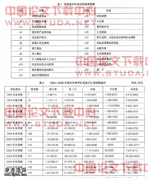 在研究境内外净利润差异协调情况时,以1992—2006年同时公开披露境内外报表的所有B股公司为样本。截至2006年12月31日,沪深两市共有B股公司110家,2004—2006年的样本中剔除了3家暂停上市或未披露境内外净利润差异的B股公司,分别是中浩B、金田B、石化B。