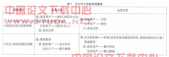(一)调整子公司个别报表(见表1)