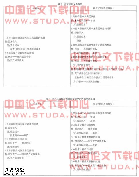 (四)存货价值中包含的未实现内部销售收益的抵销