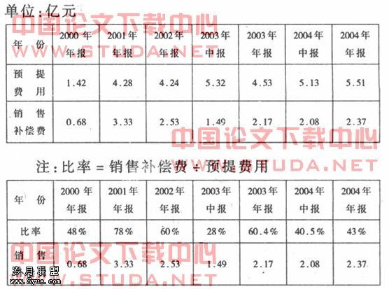 从表中可以看出:长安汽车(股票代码:000625)2000年年报“预提费用”总额为1.42亿元(其中销售补偿费为0.68亿元,占48%),2001年年报“预提费用”总额为4.28亿元,(其中销售补偿费为3.33亿元,占78%),2002年长安汽车前3季度累计计提3.06亿元的销售补偿费,第4季度冲回前期预提销售补偿费4.09亿元,即长安汽车2002年第4季度未提任何销售补偿费,冲回的4.09亿元中包括2001年度确认的销售补偿费1.03亿元。这也引发了2003年6月,以”漫天飞雪“和”和讯飞草“等网民的质疑,致使长安汽车2003年6月4日、6月10日股票交易的两次停牌。两次停牌后,长安汽车的销售补偿费在预提费用中的比率有所降低,但长安汽车在2004年中期报告中“预提费用”总额为5.13亿元,(其中销售补偿费为2.08亿元,占40.5%),2004年年报”预提费用“总额为5.51亿元,(其中销售补偿费为2.37亿元,占43%),销售补偿费占预提费用的比重仍然相对较高。