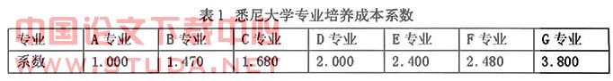 各学校一般可将经费分为人员经费和非人员经费。澳、新高校经费预算中65%-75%的经费为人员经费,25%-35%为公用经费,两者有效的调整系数为1.5%-1.9%。非工资性的支出主要有教学支出、科研支出、学术活动支出、设备支出、奖学金支出、管理费支出、公共服务费支出等。根据历年的支出情况分析,各项支出在预算中都占有相对固定的比例,形成了经费分配的相对稳定性和科学性。各学校在下达院系经费指标时采取的预算办法也比较科学,主要依据是学生数,同时考虑培养成本系数。比如悉尼大学在分配各院系教育经费时,除按照学生人头数来计算外,还根据不同专业的不同培养成本,将全校不同专业的培养成本分作7个等级系数,最高与最低之间相差较大。如表1所示: