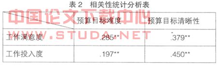 上述变量描述统计分析和相关性分析结果见表1、表2。如表2所示,工作满意度和工作投入度与预算目标难度和预算目标清晰性在0.01水平上显著相关。