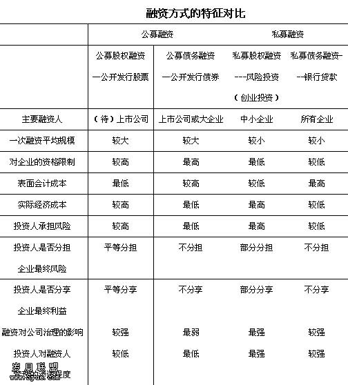 下表对公募股权融资、公募债务融资、私募股权融资和私募债务融资四种融资方式进行了对比,通过对比说明了私募股权融资对中小企业的发展起着关键性的作用。