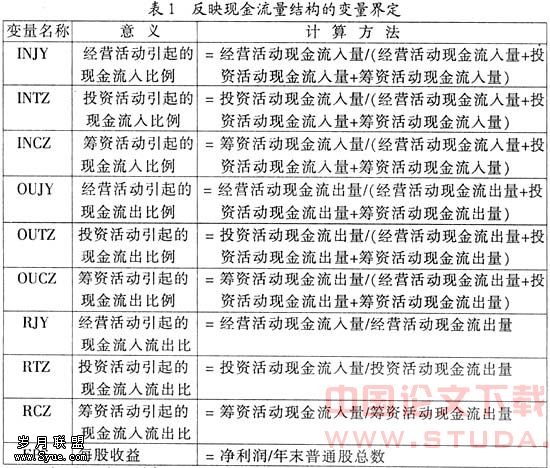 2.变量界定。本文采用三组变量反映现金流量结构,分别是现金流入结构、现金流出结构和现金流入流出比,具体界定见表1。