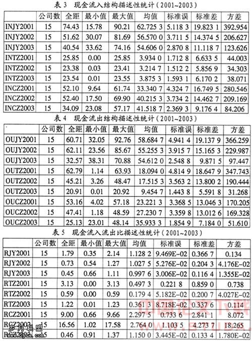 本文数据来自15家上市公司2001年~2003年各年年报,由巨潮资讯网(http://www.cninfo.com.cn)数据中心提供。
