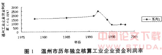 1.温州中小企业内源融资比重较大的原因。根据中国人民银行温州中心支行的资料,温州民营企业的内源融资占全部融资的60%。内源融资是温州民营企业最根本的融资方式,是企业发展的基础,是争取外源筹资的先决条件。再由于温州中小企业所处的一些产业都是一些技术含量不高的劳动密集型产业,加上温州中小企业一些产业类同带来的过度竞争,一些企业的利润水平普遍较低,资金利润率近年来不断下降(见图1),外部融资较少,因此特别是刚创业的中小企业更是依赖内源融资。