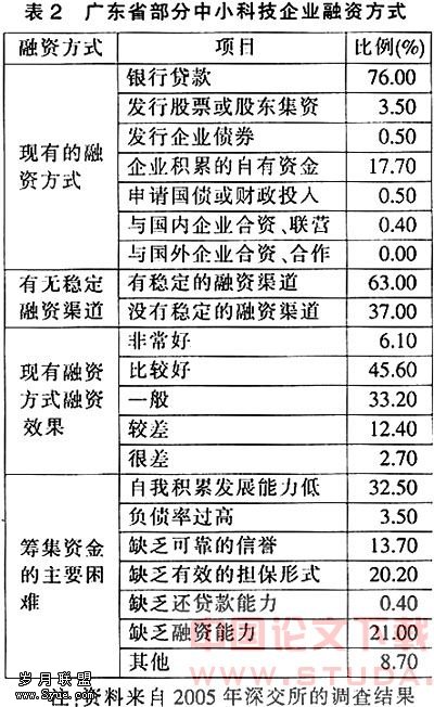 广东省科技型中小企业融资方式探讨