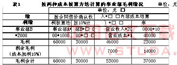 从上表计算结果来看,笔者认为,按“内部成本核算法”计算,生产产品的事业部无任何利得,有失公平。如按10%加利计算成本,事业部A自身产品的毛利为0.7万元,加上代销的毛利为5.3万元;而事业部B自身产品的毛利为1.4万元,加上代销的毛利为3.7万元。这样生产产品的事业部也将获得部分毛利。因此,财务部应与各事业部根据所生产产品的毛利确定加利的比例。 在按合同销售价格确认收入的同时,按成本加利法确认成本,这样的计算结果更为合理,也有利于各事业部的竞争。