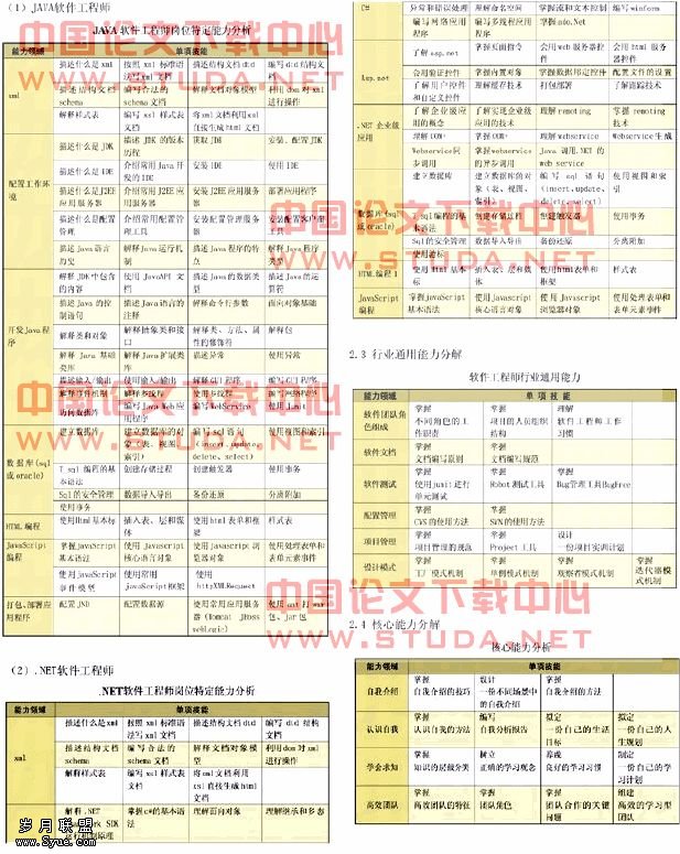根据软件工程从业人员的岗位不同,从JAVA软件工程师和.NET软件工程师两个方面,提取了基于工作过程的能力描述。
