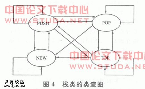 传统程序流图的测试充分性准则可以在类流图中找到对应,如类流图的节点覆盖要求测试时的操作序列应使每个操作至少执行一次,分支覆盖要求测试时的操作序列应覆盖类流图中的每条边至少一次。还可以在类流图上给出类似于数据流的定义性出现!引用性出现、定义-引用对等概念。在类流图中,所有对象的定义性出现和引用性出现根据操作(节点)中是否定义或引用该对象来确定,然后在谓词性引用和控制操作。性引用和非控制操作之间建立对应关系,从而可以类似地给出数据流准则中的定义覆盖准则、引用覆盖准则和定义-引用路径覆盖准则等。图4给出堆栈类(类名为Stack,T为栈元类型)的类流图,表1给出每个操作的定义性和引用性使用情况。?