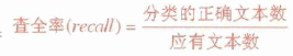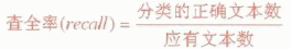 ;查全率是人工分类结果应有的文本中分类系统吻合的文本所占的比率,其数学公式表示如下: