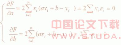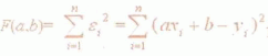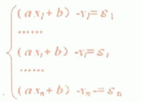 =axi+b,则各实验点与拟合直线之间的误差为εi=-yi=(axi+b)-yi,它反映了用直线y=ax+b来描述(xi,yi)时,估计值与观测值yi之间的偏差大小。则有: