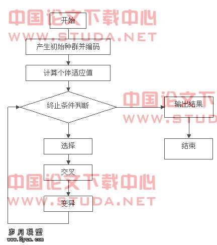 标准遗传算法(( SGA)的基本流程如图所示,算法主要步骤如下图5.1示: