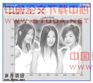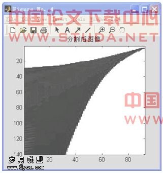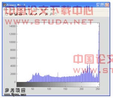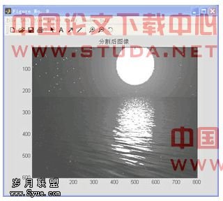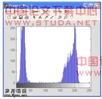 由于图片4.5直方图的平坦,无法找出两峰之间的峰谷,而图片4.8的直方图各峰差别很大,导致图片4.5和图片4.8都无法获得足够的图像先验知识,从而使本方法的使用遇到困难,阈值的寻找困难直接导致在采用本方法处理图片后,分割后的图像与原图像的差别很不明显,并未达到实际的分割效果。因此,本方法的使用的局限性很大,只适于对一些简单的背景和目标图像的灰度差别很大的图像的处理,(程序源代码参见附录一),而且不便于阈值的自动选择,无法完全自动的有程序实现。